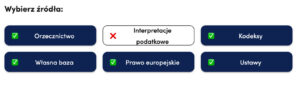 W każdym momencie można wybrać kategorię źródeł, z których Gaius będzie korzystał przy odpowiedzi na nasze kolejne pytanie.